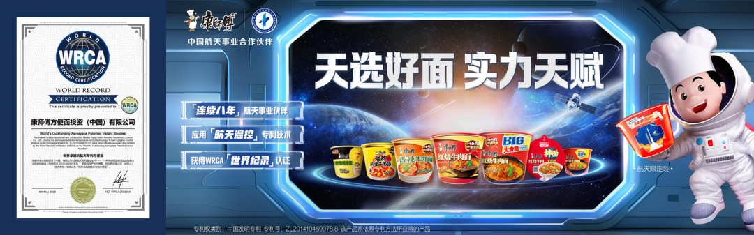 2025年,康师傅推动航天专利温控技术在“红烧牛肉面”产品生产线全面落地应用,保证全国各地面饼口感一致。作为全国首个应用航天专利技术的方便面企业,康师傅主动对标航天食品的严苛标准,将航天专利“温控技术”引入生产线,这不仅是一次技术升级,更是一场对大众的品质承诺。