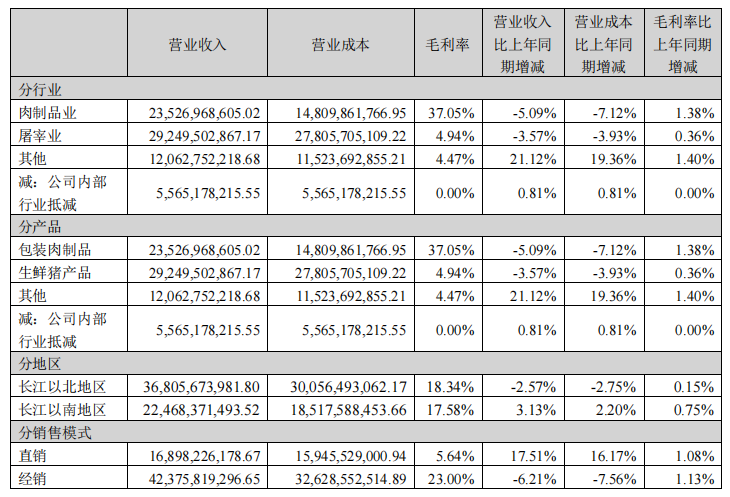 核心业务分化:肉制品“以质换量”,屠宰业“以量补价”