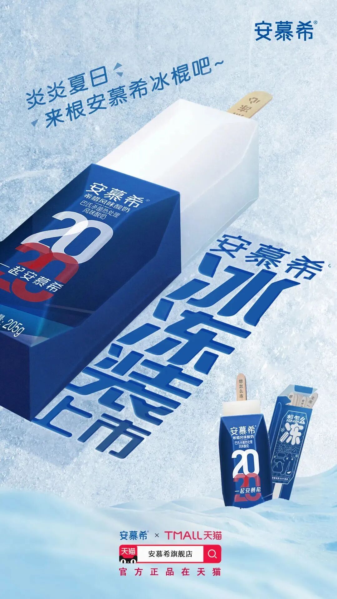 而在辉山之前,安慕希就曾经推出过夏日限定的冰冻套装,那就是给安慕希酸奶配备了木制冰冻签,引导消费者在炎炎夏日可以把安慕希酸奶放在冰箱里冻着吃。