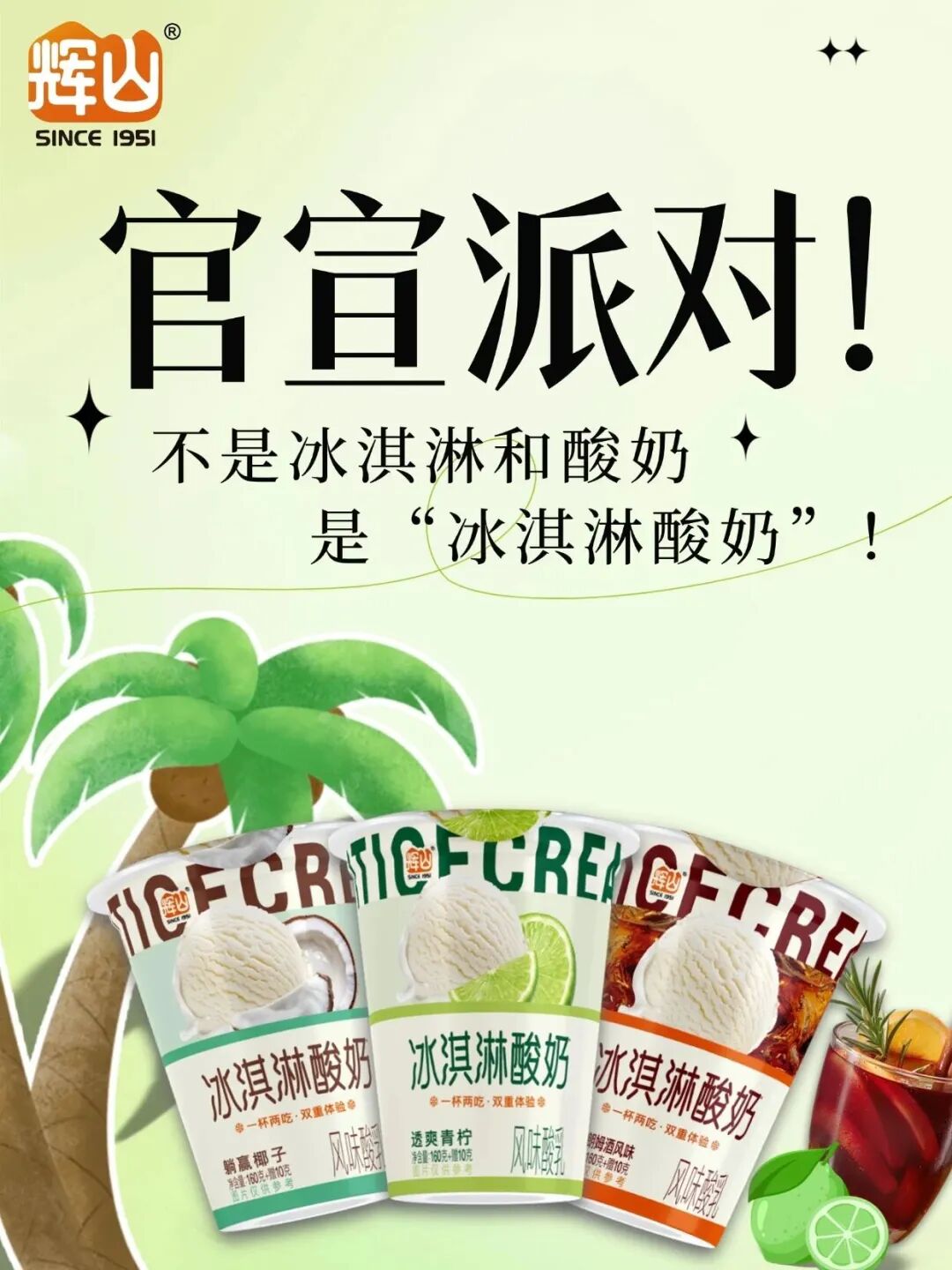 近日中国冰淇淋新媒体观察到,辉山官宣了辉山冰淇淋酸奶新口味,分别为“躺赢椰子”、“透爽青柠”、“朗姆酒风味”三款口味,这让一杯两吃的辉山冰淇淋酸奶拥有了更多的口味。