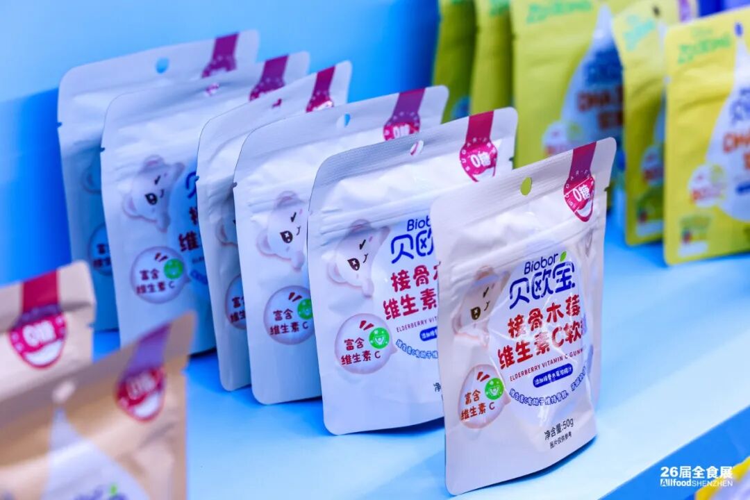 展台上,小熊、海豚、嘴唇等各种造型的橡皮糖琳琅满目,甚至还有汉堡、口红等仿真设计,极大地提升了产品的趣味性和社交分享属性。宝奴咪的酸桃心橡皮糖、迷你酸棒糖等产品,更是凭借独特的口感和包装,成为现场客商关注的热点。