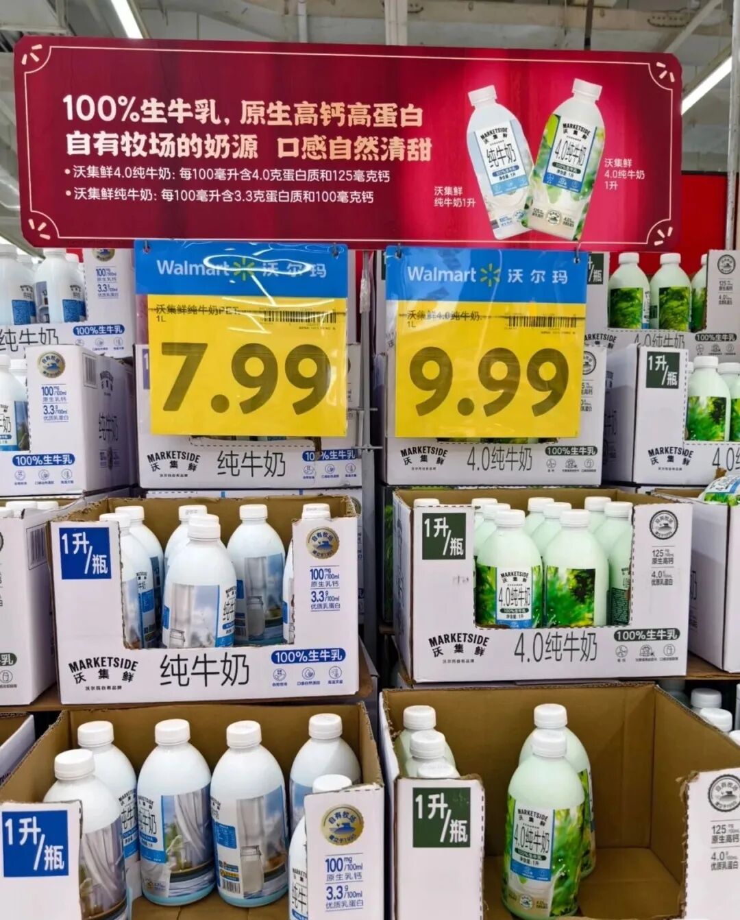 其中,好评最多的是沃集鲜4.0纯牛奶,数据显示,该产品单季度销量超146万份,不少网友表示,这款产品一度引发抢购,部分门店甚至出现断货和限购,某购物平台上,还出现了许多专门的“沃尔玛牛奶代购”。