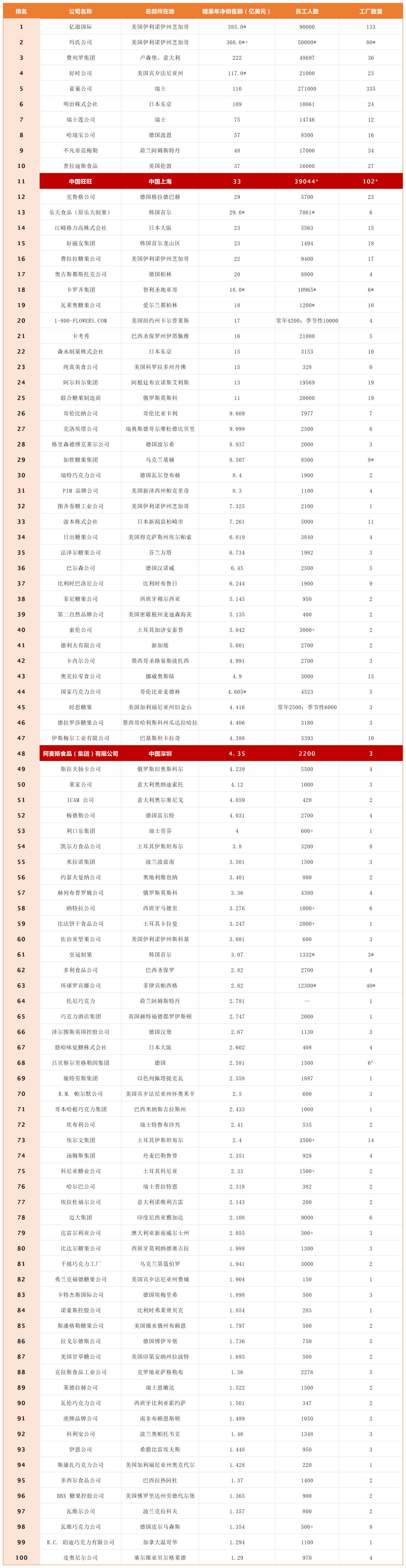 现将2026年度全球100大糖果公司排行榜榜单公布如下